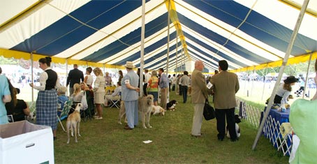 | PCAの翌日、のんびり移動だけしようかと思っていたのですが、隣のデラウェア州でオールブリードショーがあると聞いて、Salisbury から車で2時間ほどドライブをして出かけてきました。着いた時間が遅かったのでブリードの多くは終わってしまっていましたが、それでもいくつか見られて楽しかったです。 ショーサイトは、日本で言うオートキャンプ場のような所。巨大なテントを中央に据えて左右にリングが設置されています。テントの中はこんな感じで十分な日陰があります。 田舎のショーと思っていたら、エントリー総数は軽く1,000を越えていて、日本の地方のFCIショーよりも大きいものでした。お天気も良かったし、屋外で日差しがいっぱい。写真も撮りやすくてありがたかったです。 |